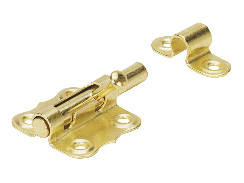 Tolóretesz bútorajtókra történő felcsavarozásra vagy hobbi és kerti célokra, pl. kertkapukhoz vagy kisállatólakhoz. Sárgaréz bevonattal.