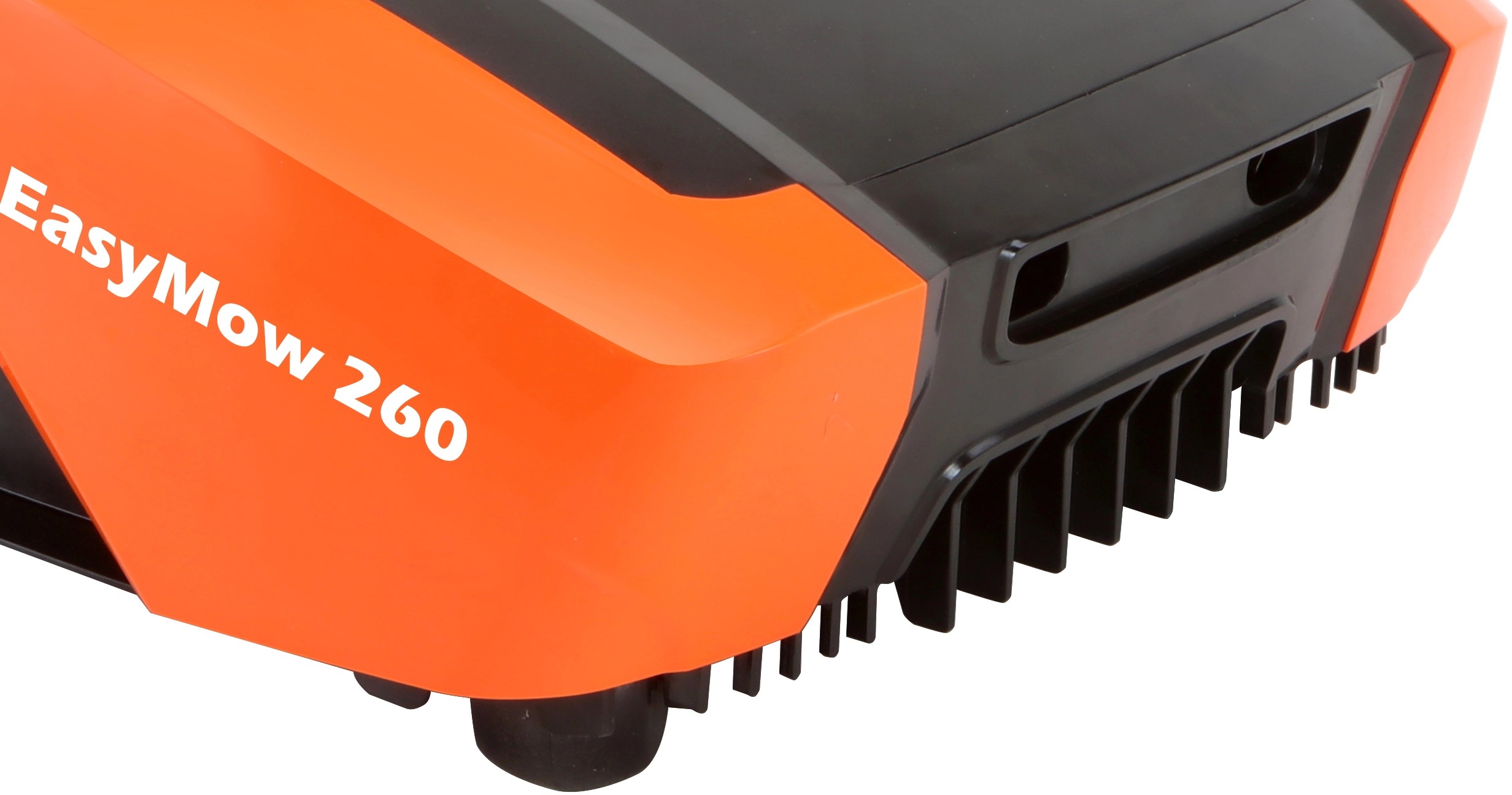 Az EasyMow 260 nagy teljesítményű, 20 voltos lítium-ion akkumulátorral van felszerelve, 2,0 Ah kapacitással. Akkutöltésenként 60 perc az üzemidő. A töltési idő kb.100 perc. A 160 mm-es vágási szélesség, a 20 mm és 55 mm közötti vágási magasság tisztán és rendben tartja kertjét. A dőlés-, emelés-, borulás- és ütközésérzékelők biztosítják az optimális védelmet.