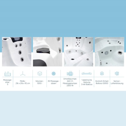 A víz hőmérsékletét 16 és 40 fok között állíthatja be az igényeinek megfelelően. A háromszoros peremszigetelés segít a megfelelő hőmérsékleten tartani a medencét, miközben kontrollálja az energiaköltségeket. Az Ön kényelme érdekében a felhasznált anyagok kiváló hangszigetelésének köszönhetően a masszázsmedence különösen csendes.