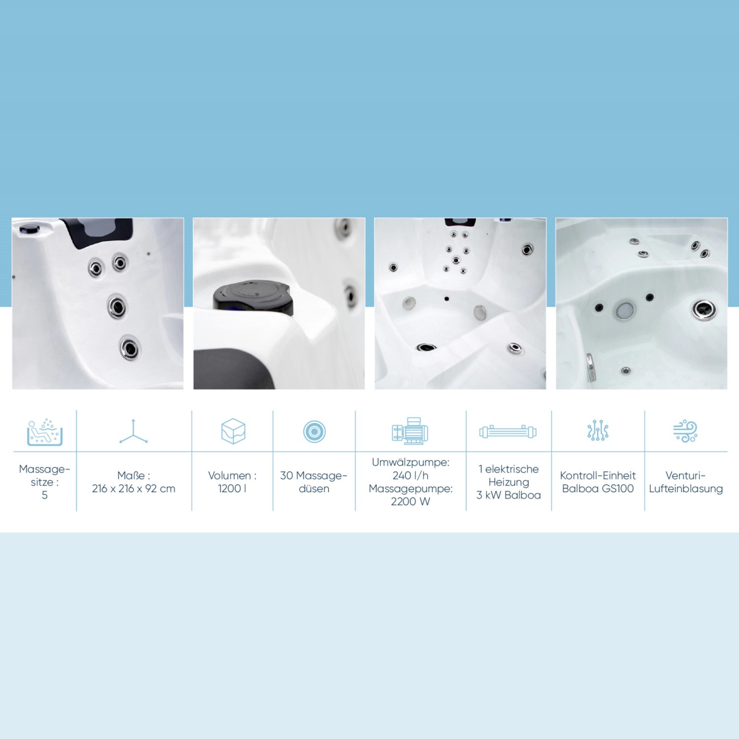 Domenico masszázsmedence 1200 l, 216 cm x 216 cm x 92 cm