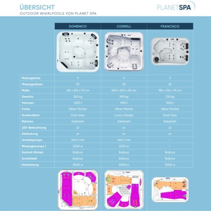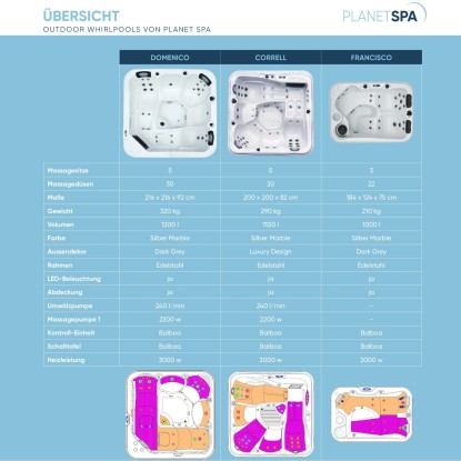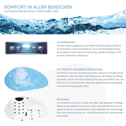 A BISKAYA® kollekcióba tartozó Planet-Spa kültéri masszázsmedencéinkkel egész évben megteremtheti saját személyes wellness-oázisát. Kertjében, teraszán, vagy hatalmas erkélyén. A masszázsmedencéket közép- és észak-európai éghajlatra tervezték.