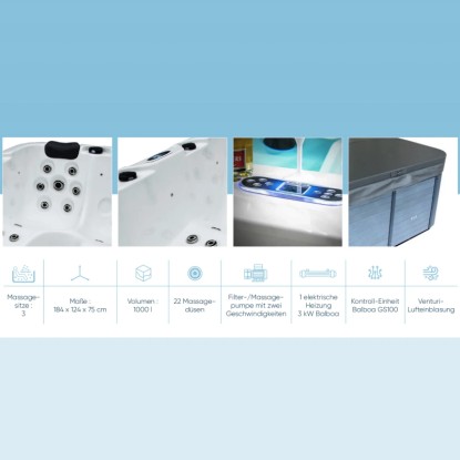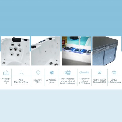 Francisco masszázsmedence 1000 l 22 fúvóka 184 cm x 124 cm x 75 cm