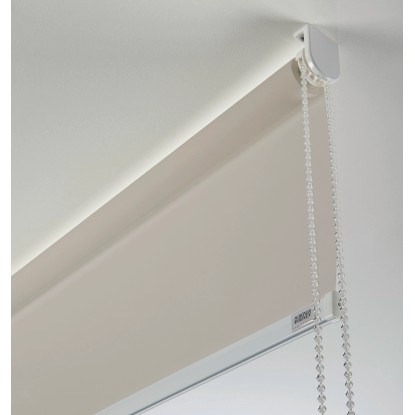 Kezelése könnyedén végezhető egy átlátszó lánccal, amely tetszés szerint jobbra vagy balra szerelhető fel az oldalhúzóval együtt. A fehér színű rolótechnika és szegélyléc letisztult kialakításával biztosít nemes megjelenést.