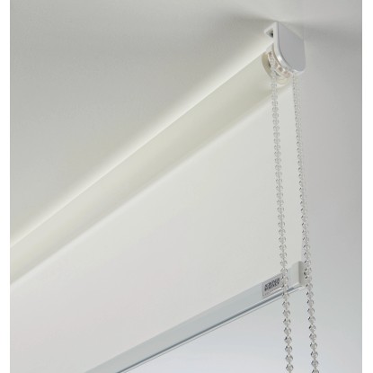 Kezelése könnyedén végezhető egy átlátszó lánccal, amely tetszés szerint jobbra vagy balra szerelhető fel az oldalhúzóval együtt. A fehér színű rolótechnika és szegélyléc letisztult kialakításával biztosít nemes megjelenést.