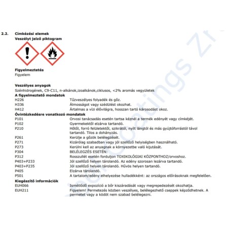 | Fogyasztás m²-enként, ml-ben: | 10 ml |