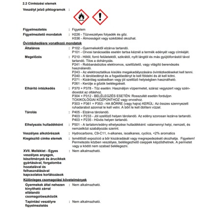 | Fogyasztás m²-enként, ml-ben: | 10 ml |