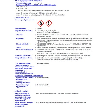 | Alk. gyermekjátékhoz (DIN EN 71-3 bevizsg.): | Gyermekjátékhoz nem alkalmas |