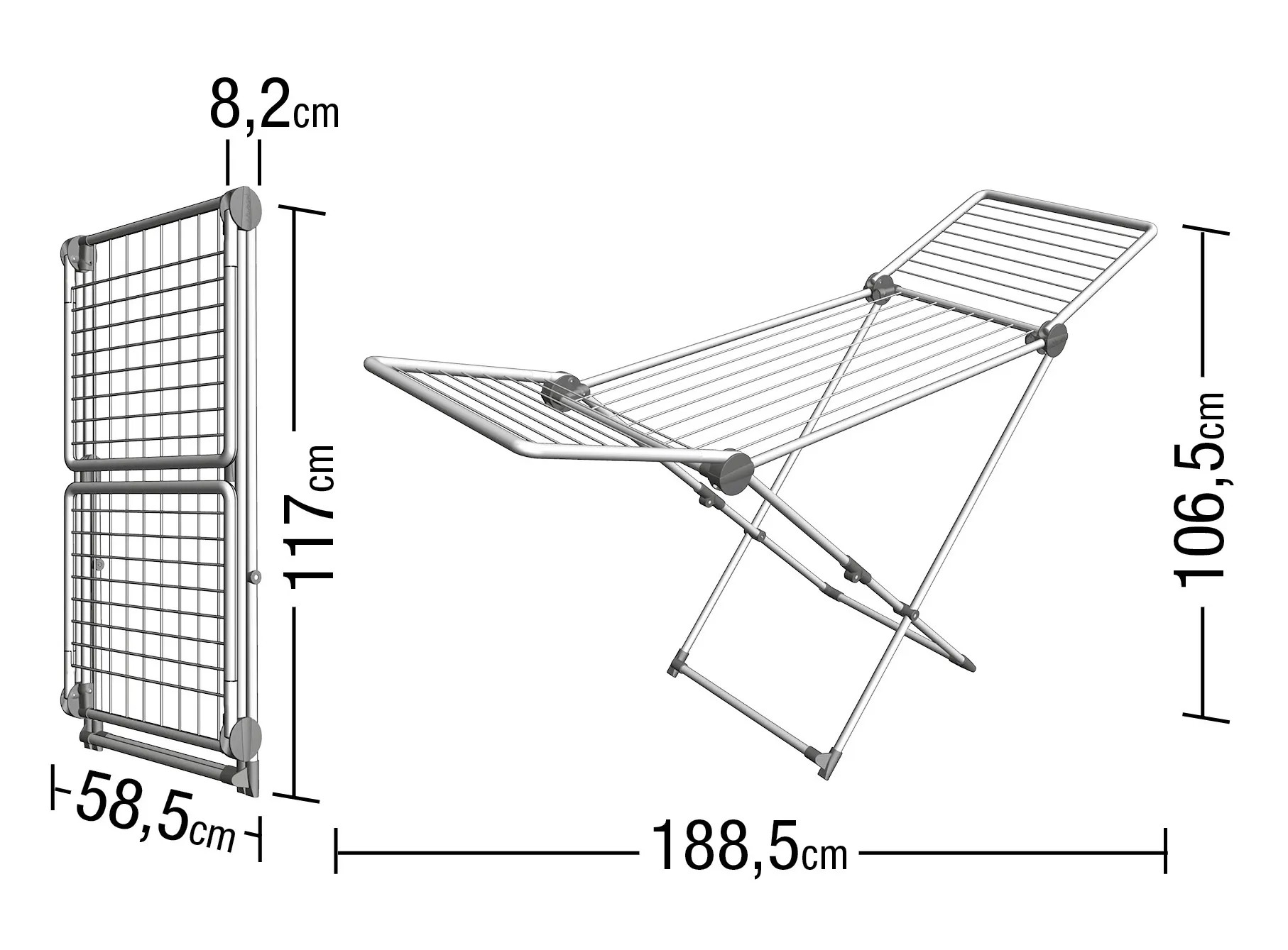 A 20 méternyi szárítási lehetőség és az ideális teherbíró képesség sokoldalú kihasználást tesz lehetővé.