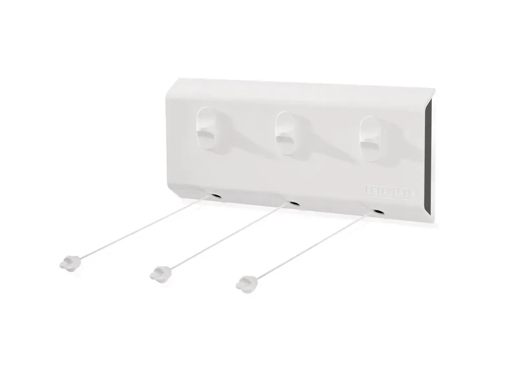 3 egyedileg kihúzható szárítókötélnek köszönhetően rugalmasság a szárításnál a ruhák mennyisége szerint. Maximális távolság a két felület között: 5 m. Összesen max. 15 m terítési hosszúság.