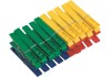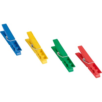 Az összesen 20 darab ruhacsipesz szín szerint, 2 sorban van elrendezve a fóliában. A csipeszek mérete 72 mm, súlyuk egyenként 4,5 g, és sárga, sötétkék, zöld, valamint piros színűek.