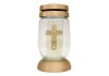 Műanyag arany tetejű és talpú, keresztmintás, sleeve fóliás üveg urnamécses 260