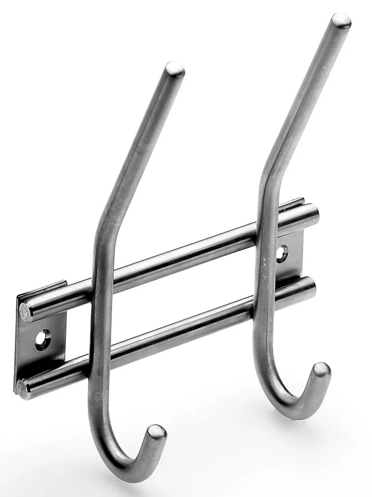 A Hettich rozsdamentes acélból készült, felcsavarozható ruhafogas 2 db dupla akasztóval.