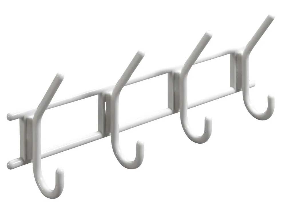 A Hettich fehér színű felcsavarozható műanyag ruhafogas 4 db akasztóval a kényelmes tárolás érdekében.