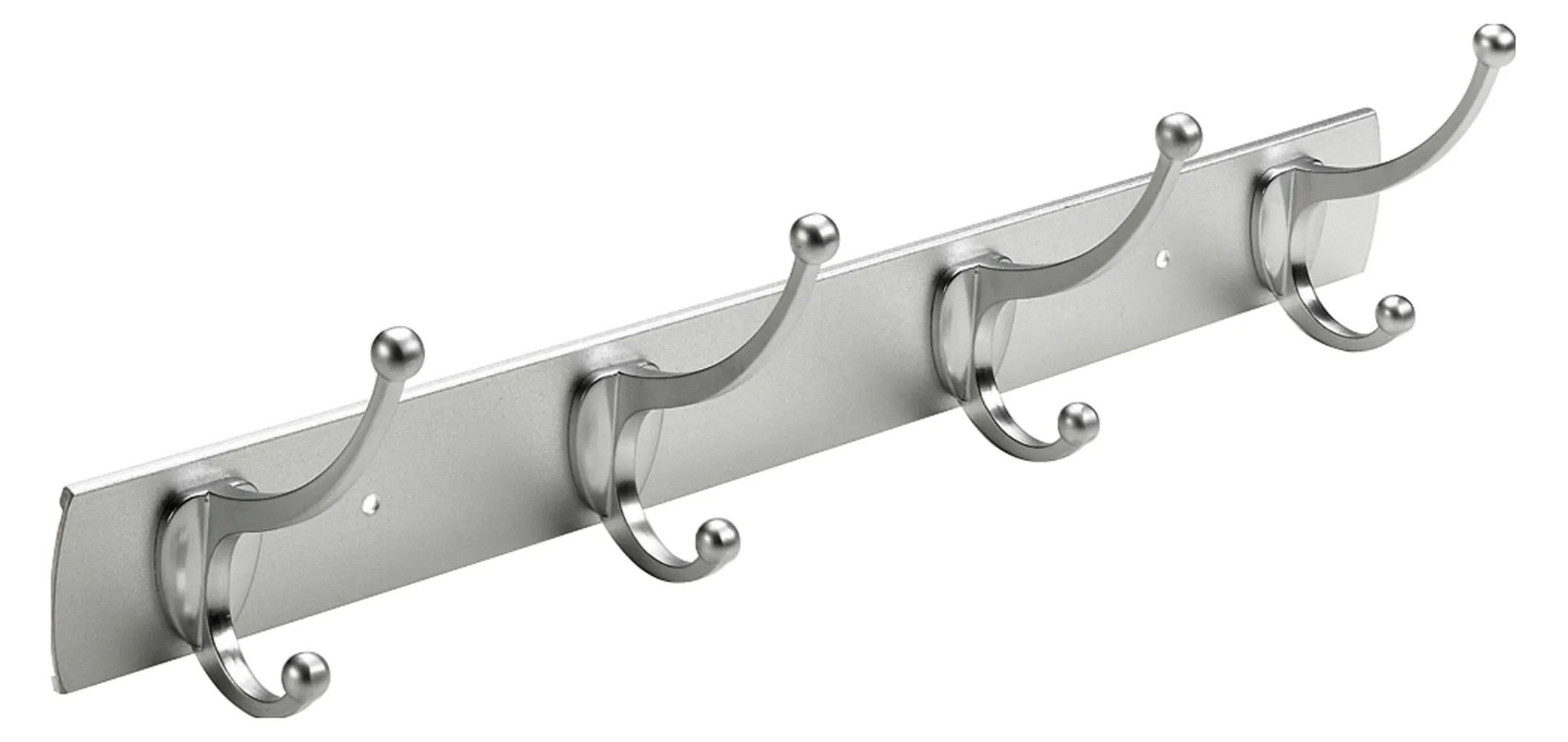 Hettich alumíniumból / cinkből készült, felcsavarozható ruhafogas 3 db dupla akasztóval.