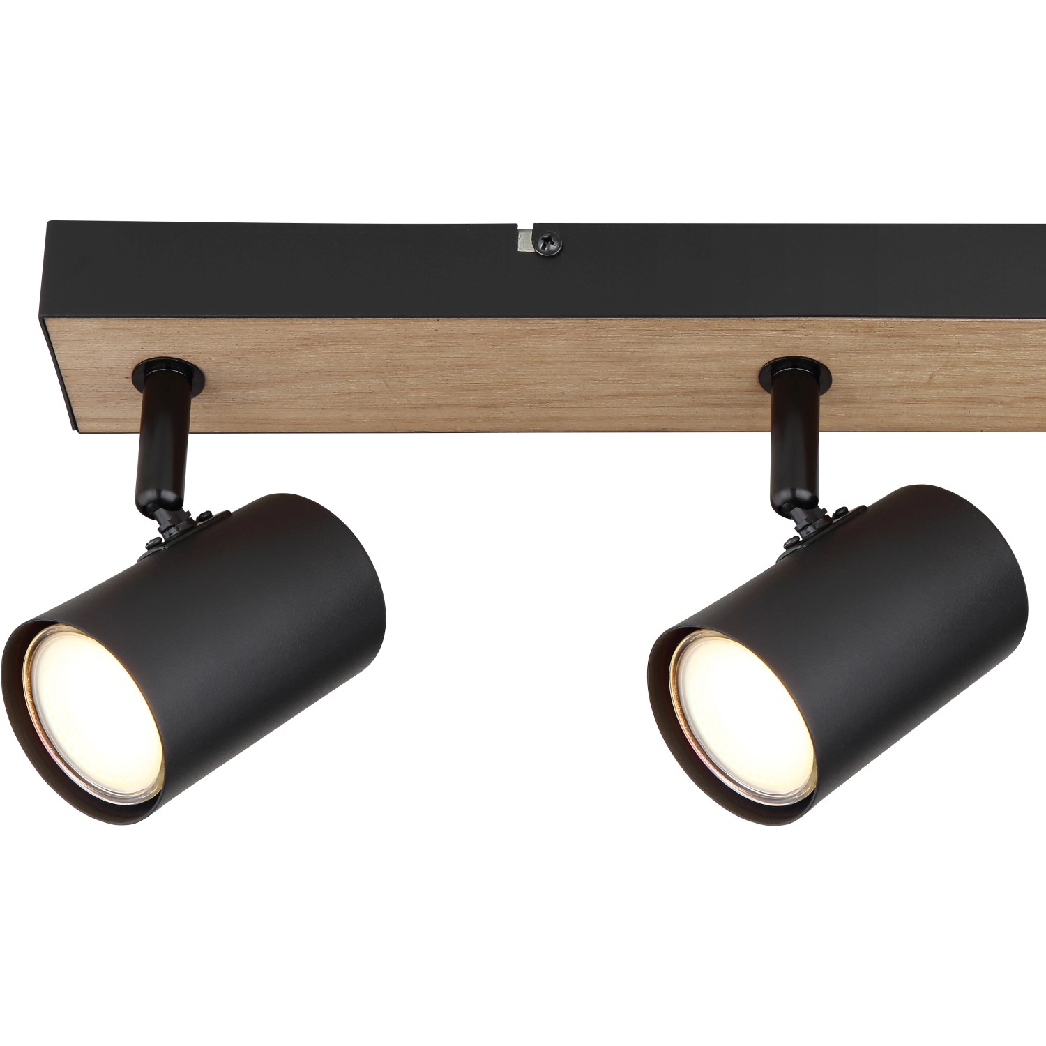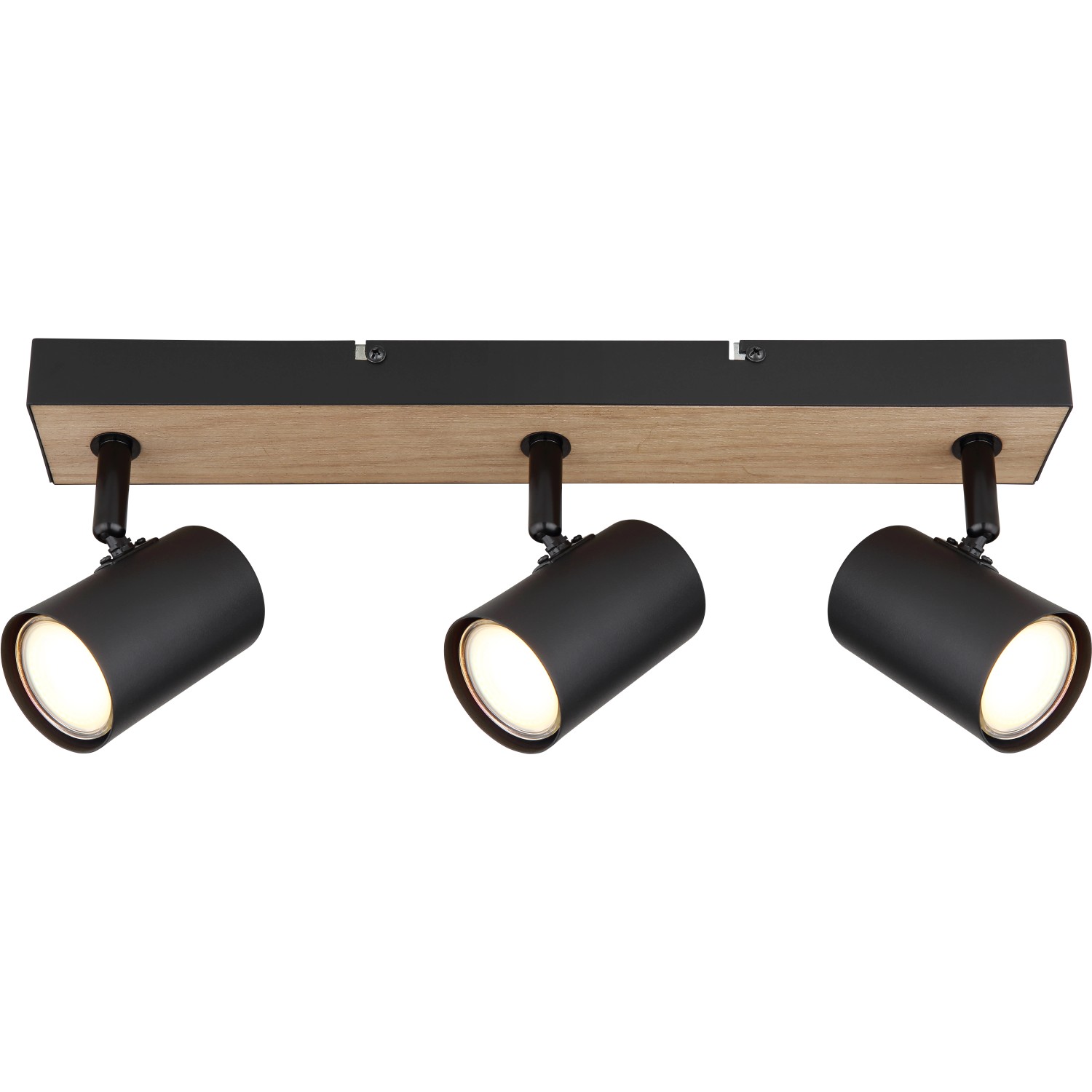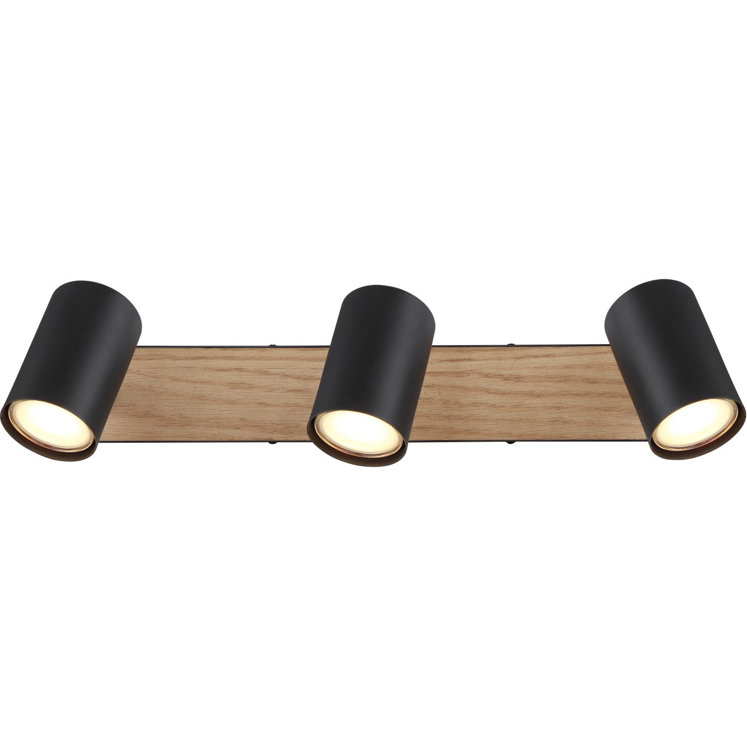 A Robby sorozat ezen egyszerű spotlámpája lenyűgöz kialakításával és színvilágával. A matt fekete fémből és fahatású MDF-ből készült négyszögletes mennyezeti tartón (41 cm x 6 cm) három GU10-es foglalat található, amelyeket henger alakú búra borít. A GU10-es foglalatnak köszönhetően szabadon választhat izzót legfeljebb 35 wattos maximális teljesítményig.