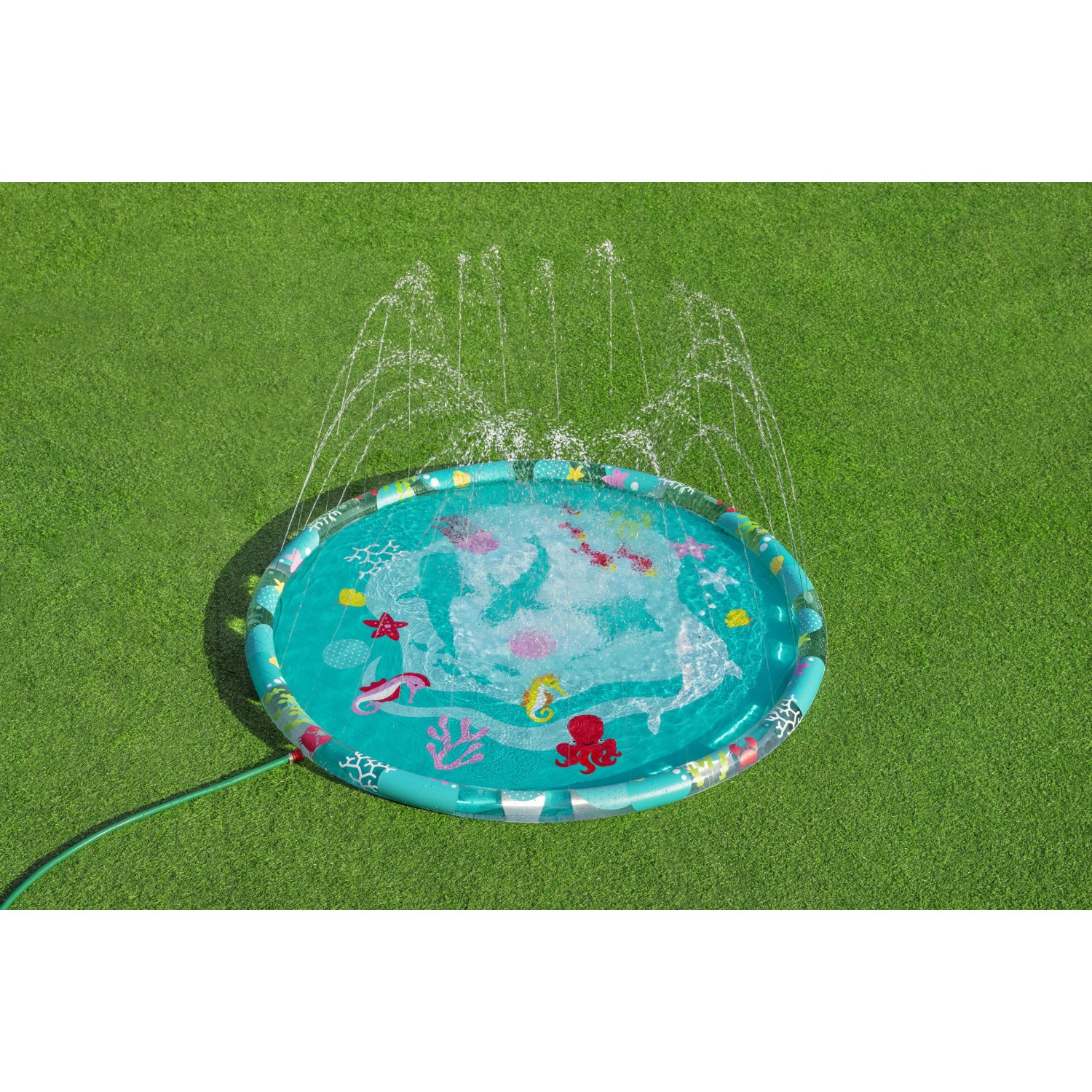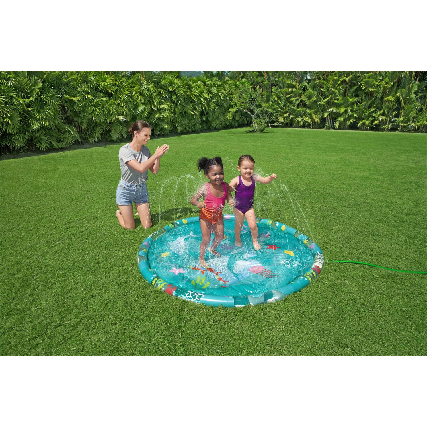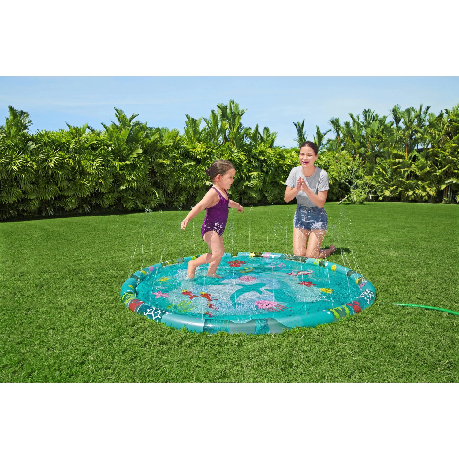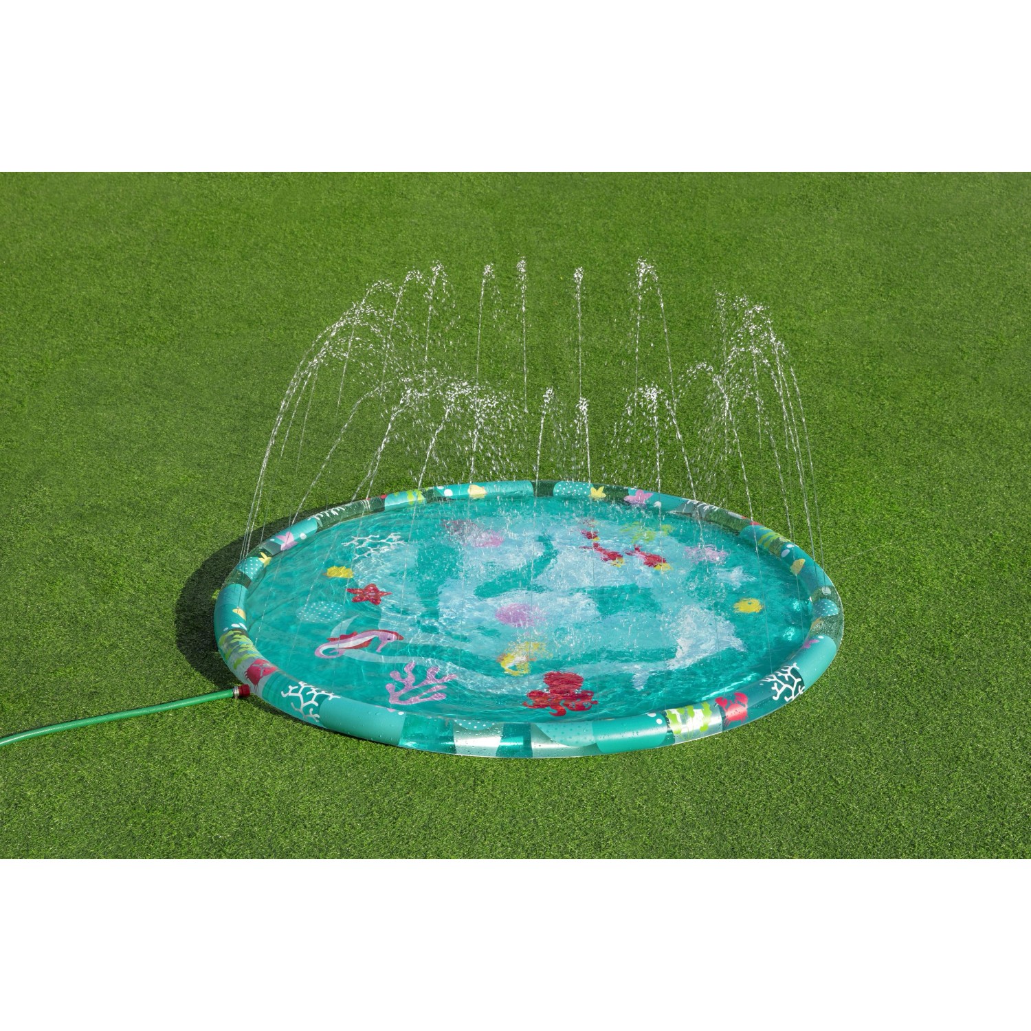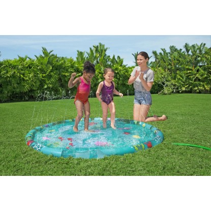 A Bestway Underwater pancsoló nagyszerű vízi szórakozást biztosít a saját kertjében. A sekély pancsolómedence ideális a forró nyári napokon való felfrissüléshez. Színes, tengeri mintázatával okoz örömet a gyerekeknek. A pancsoló olyan peremmel felszerelt, amelyet egy szelepen keresztül könnyen fel lehet fújni. PVC-ből készült, így ellenálló tulajdonságaival nyűgöz le.