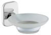 Az S 100 termékcsaládhoz tartozó szappantartó tejüvegből készült, mely klasszikus, krómozott tartóval szerelhető a falra. A csomag a rögzítőanyagokat is tartalmazza.