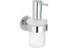 A tartóval felszerelt szappanadagoló az Essentials sorozat része. Üvegből készült szappantartóval, valamint fémből készült tartóból áll, és GROHE StarLight krómozott felülettel rendelkezik. Ráadásul a tartó rejtett rögzítéssel rendelkezik.