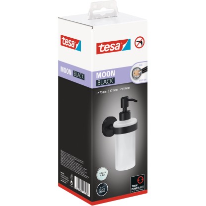 tesa Moon Black szappanadagoló fekete matt szatinált üveg felragasztható