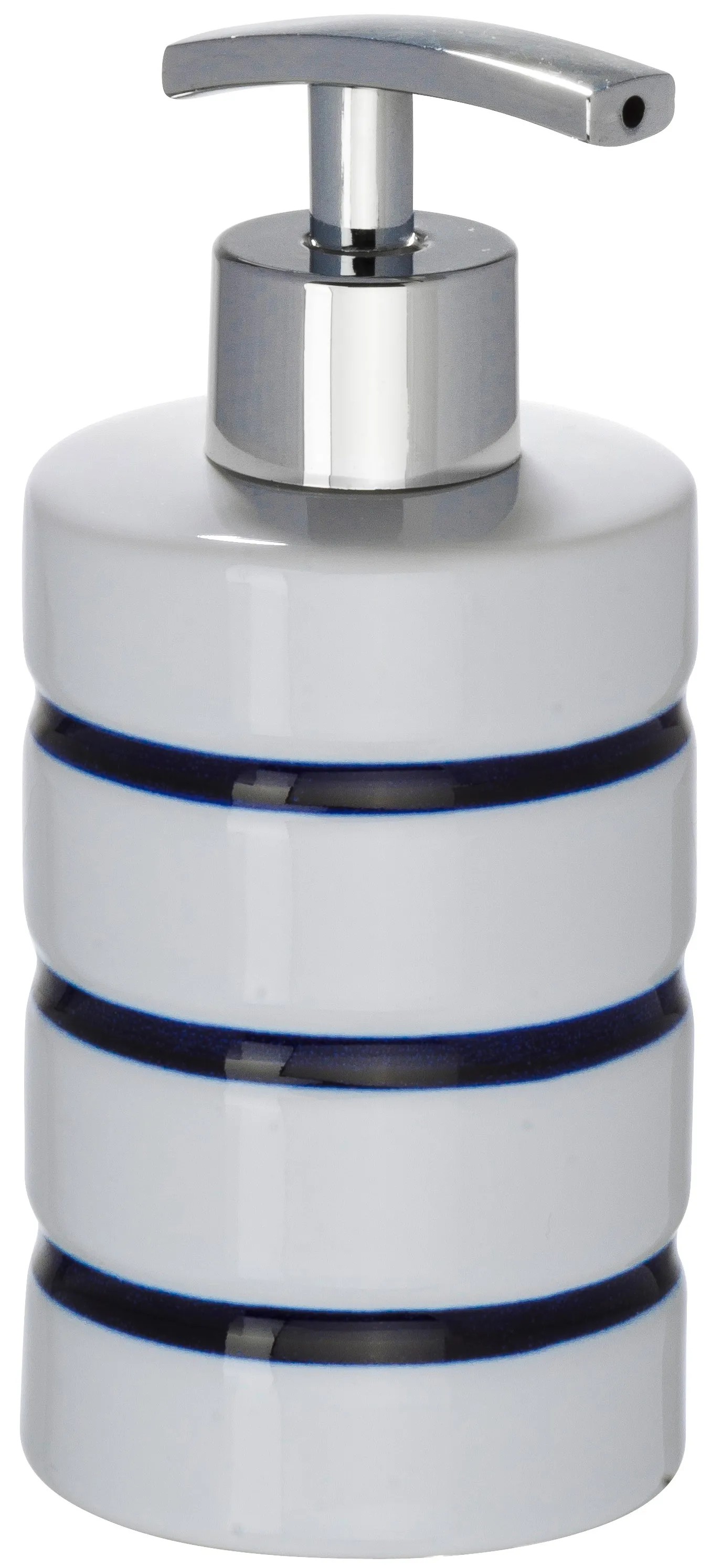 A kék csíkos szappanadagoló vonzza a tekintetet, és friss fuvallatot hoz minden fürdőszobába. Kiváló kidolgozású, és különösen tartós kerámiából készül. A szappanadagoló stabil, és igazi fénypont minden fürdőszobában. A krómszínű pumpafej elegáns hatású, a sima felület révén a Marine szappanadagoló különösen jól tisztítható, ezért nagyon higiénikus.