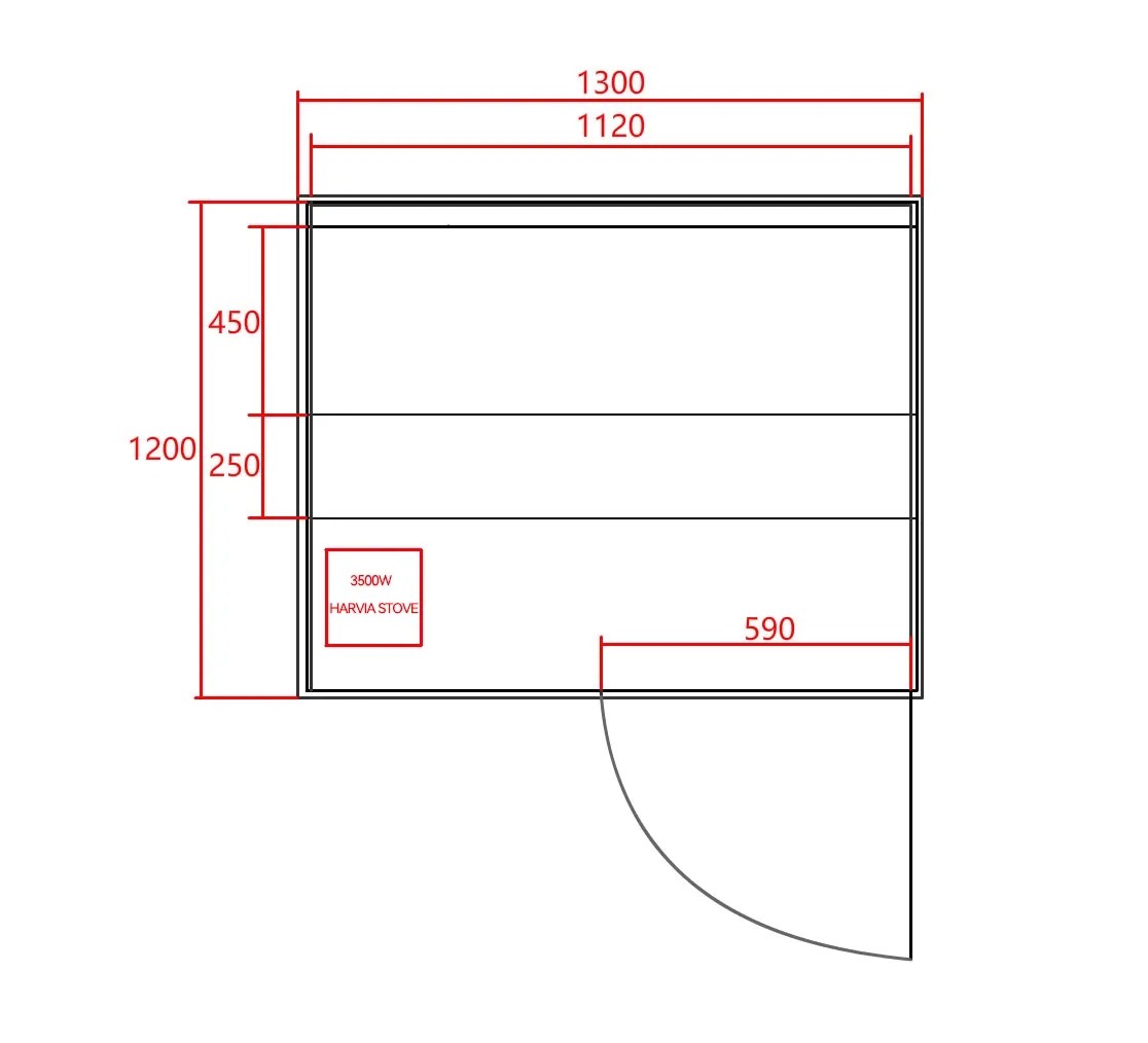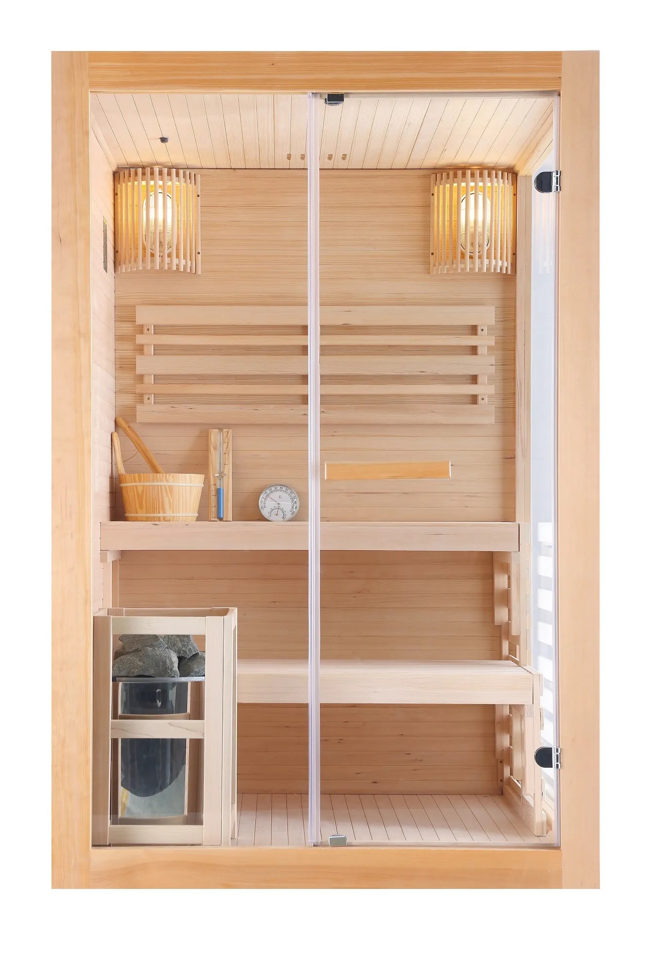 Panorama finn szauna, 2 személyes, 130 cm x 120 cm x 200 cm, 3500 Watt