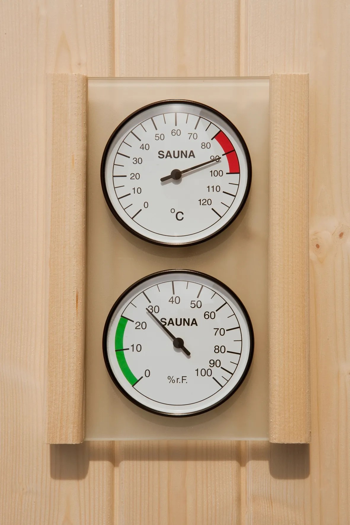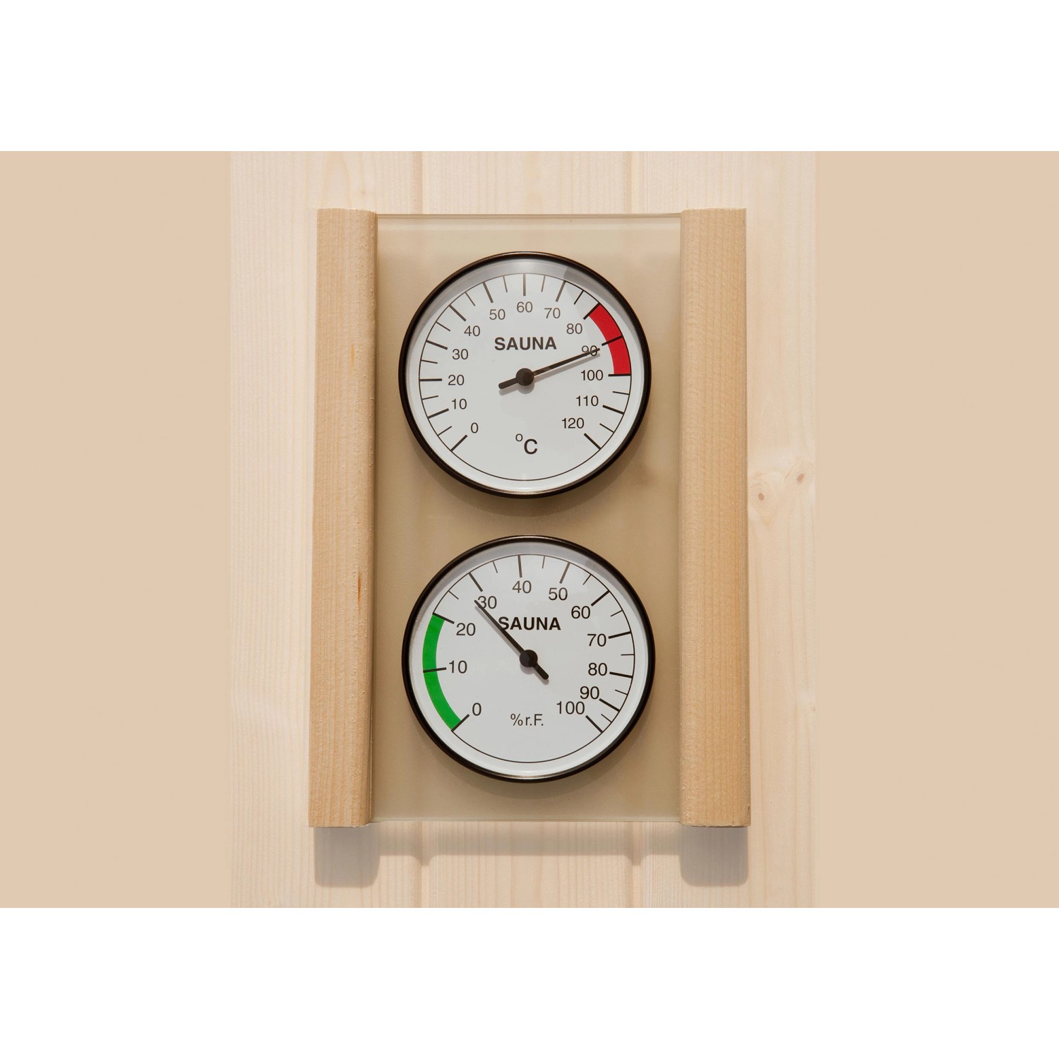 A stílusosan egy üveglap alatt elhelyezett és fakeretbe foglalt szett nem csupán hasznos, hanem valódi látványossága is minden szaunának.