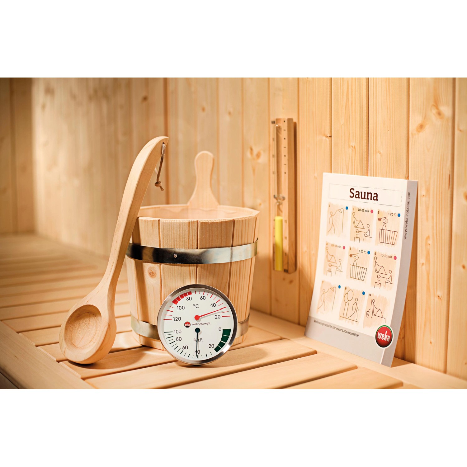 Ezzel a szaunatartozék-szettel mindene meglesz, amire csak szüksége van a kikapcsolódáshoz - akár ajándékként kapja, akár saját magának veszi. A csomag tartalmaz egy fából készült 5 literes felöntődézsát, egy speciális fából készült vizeskanalat, egy klímahőmérőt a jólesően kellemes klíma érdekében, egy fából készült természetes homokórát és egy, a fürdőzés szabályait tartalmazó táblát.