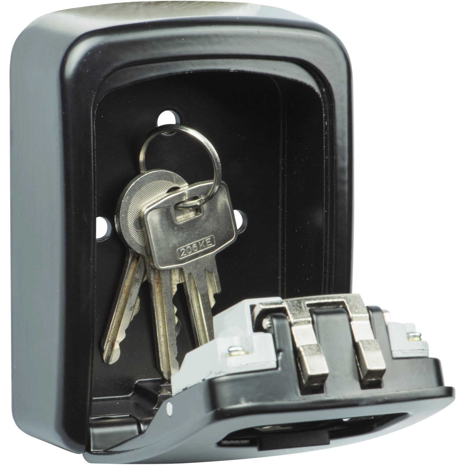 A Burg Wächter Key Safe 30 SB kulcsszéf kulcsok és egyéb értéktárgyak biztonságos tárolására szolgál. Egyszerű és központi tárolóhelyet kínál változó embercsoportok (munkások, autókölcsönző, szerviz, ápolók, nyaralók stb.) számára. A rendkívül ellenálló fröccsöntött cink ház egy 4 számjegyű számzáras lakattal zárható le, amely tetszés szerint állítható be. A kulcsszéf beltéren vagy védett kültéri helyeken falra szerelhető. A kulcsszéfben legfeljebb 9 cm hosszú kulcsok tárolhatók. A csomag tartalmazza a rögzítőanyagot.