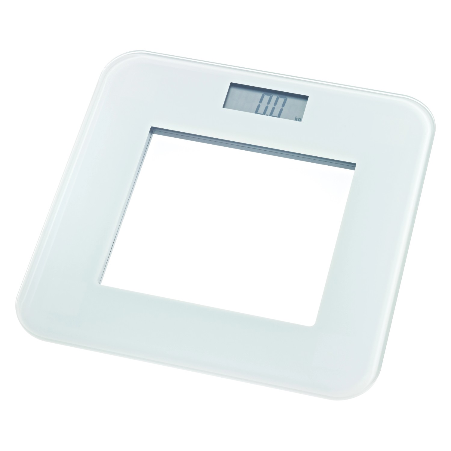 Az OBI DECO-LINE Sali személymérleg lekerekített formájú, letisztult formatervezésű, fehér és átlátszó üveg vegyes alkalmazásával. LCD-kijelzővel és csúszásbiztos fellépővel készül. Maximális mérési képessége 150 kg.
