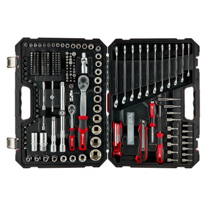 A készletet két bit- és dugókulcs adapteres csavarhúzó, egy 18 mm-es pengés barkácskés és megfelelő pótpengék egészíti ki. A két, 60 mm és 80 mm hosszú mágneses bittartó a biztonságosan tartja a biteket. A sokféle, 6 mm-es (1/4") és 13 mm-es (1/2") dugókulcs, közöttük hatlapú, E-profilú és gyújtógyertyákhoz való dugókulcsok széles alkalmazási kört fednek le.