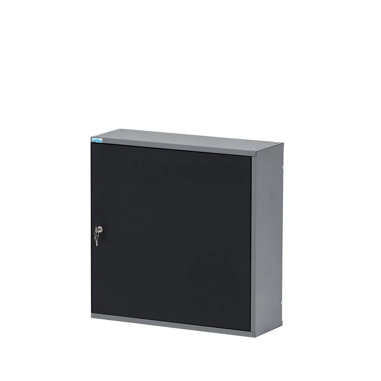 A faliszekrény egy zárható ajtóval és hat darab 13 cm × 10 cm × 5 cm méretű rekesszel rendelkezik. Ezenkívül még két, kemény műanyagból készült polc is tartozik hozzá. A porszórt bevonat vonzó megjelenést és tartósságot biztosít.