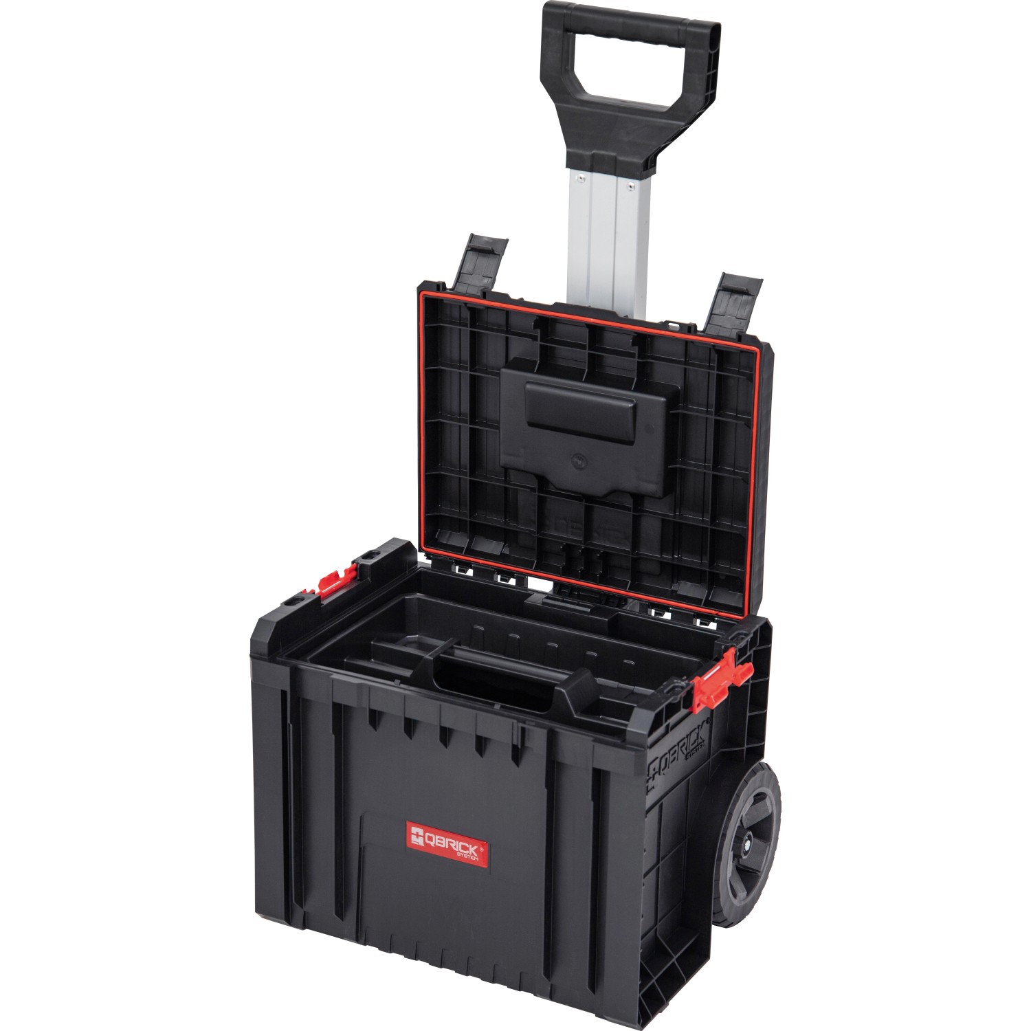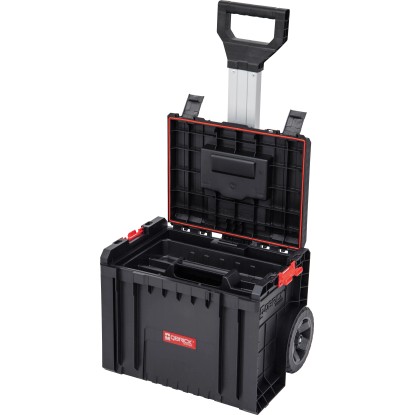 A Qbrick System Pro Cart szerszámosdoboz egy kerekeken guruló doboz, így mobilan hordozhatja és szállíthatja szerszámait. A gumibevonatú kerekek és az alumínium teleszkópos fogantyú könnyű kezelhetőséget biztosítanak.