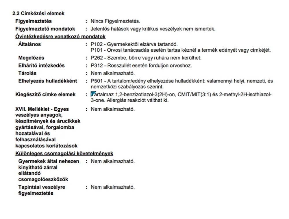 | Fogyasztás m²-enként, ml-ben: | 14 ml |