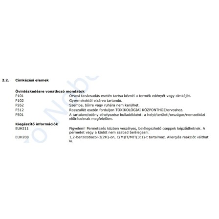 | Alk. gyermekjátékhoz (DIN EN 71-3 bevizsg.): | Gyermekjátékhoz nem alkalmas |