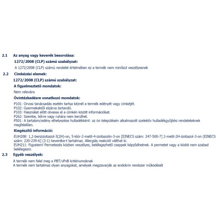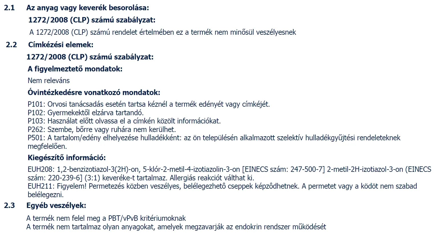 | Izotiazolinonra allergiásoknak is alkalmas: | Nem alkalmas |