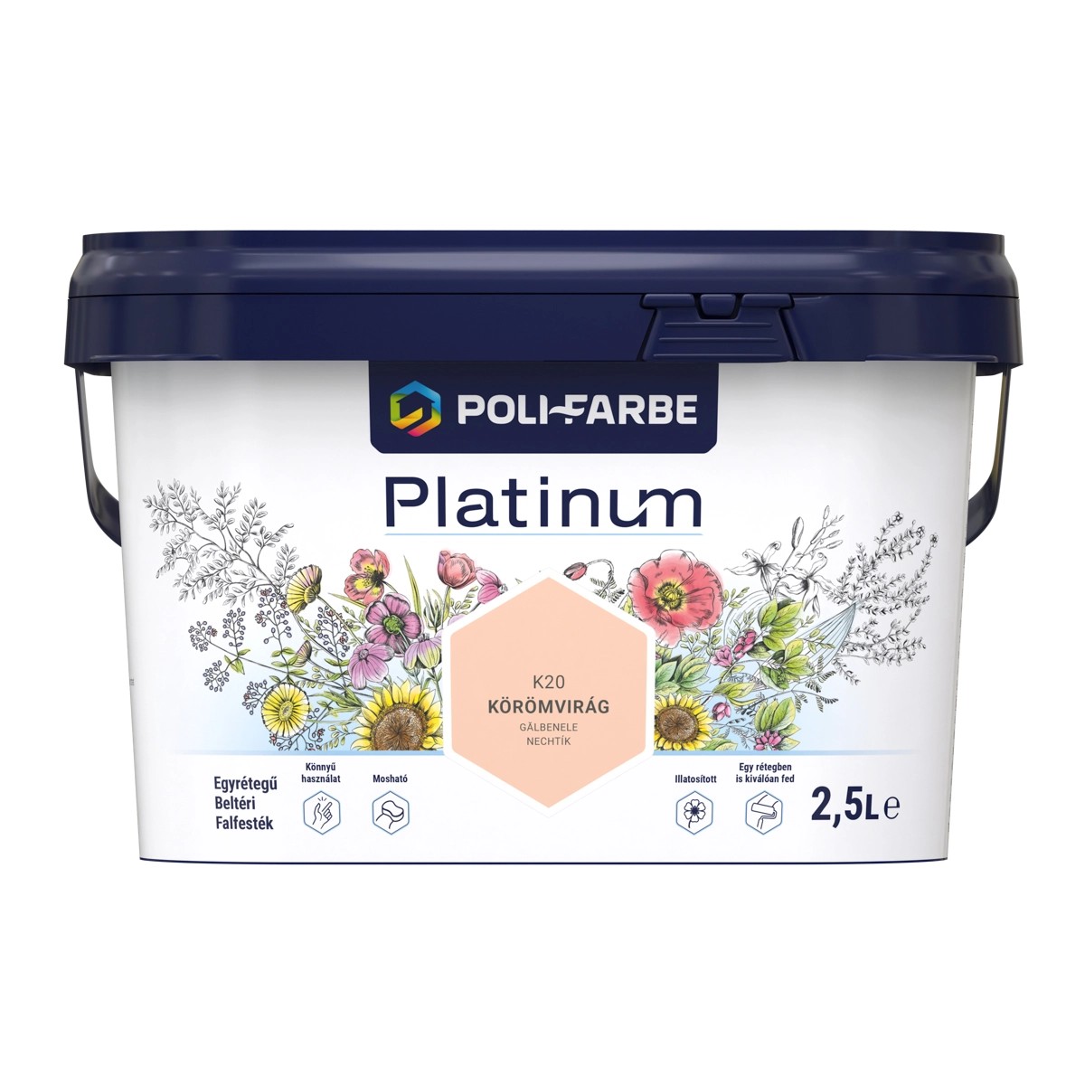 Poli - Farbe Platinum beltéri falfesték diszperziós Körömvirág matt 2,5 l