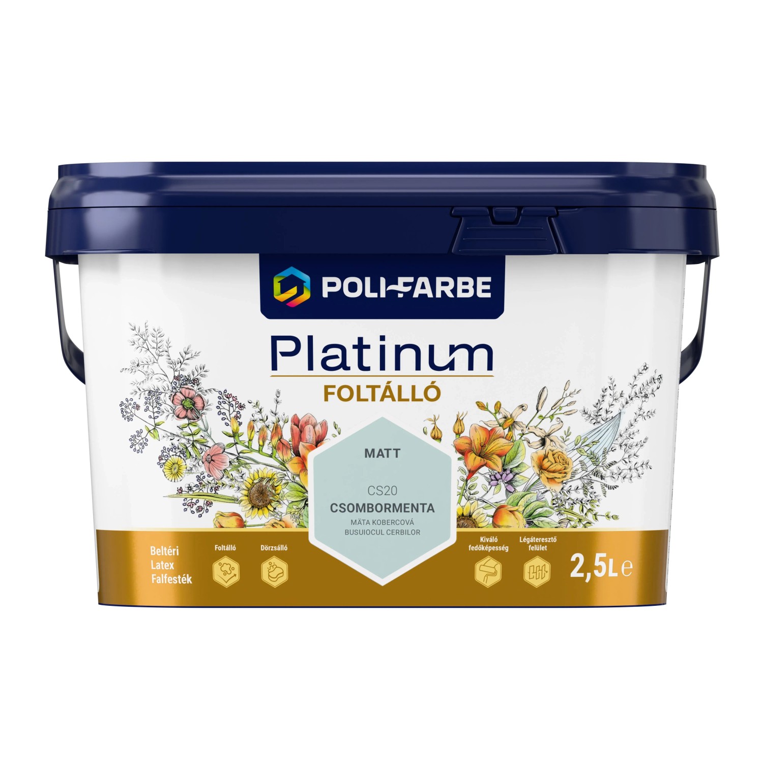 Poli-Farbe Platinum Foltálló beltéri falfesték Csombormenta CS20 2,5l