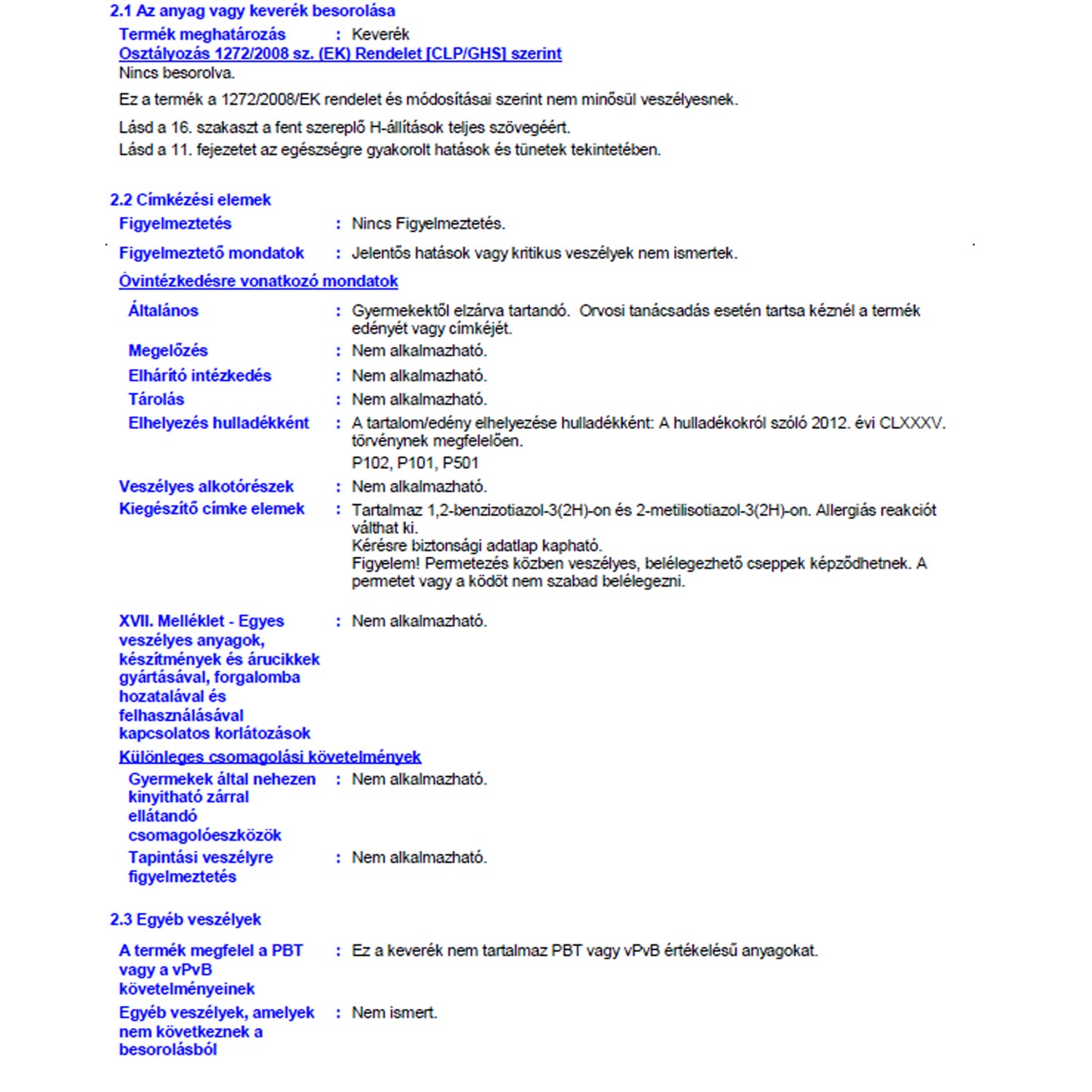 | Izotiazolinonra allergiásoknak is alkalmas: | Alkalmas |