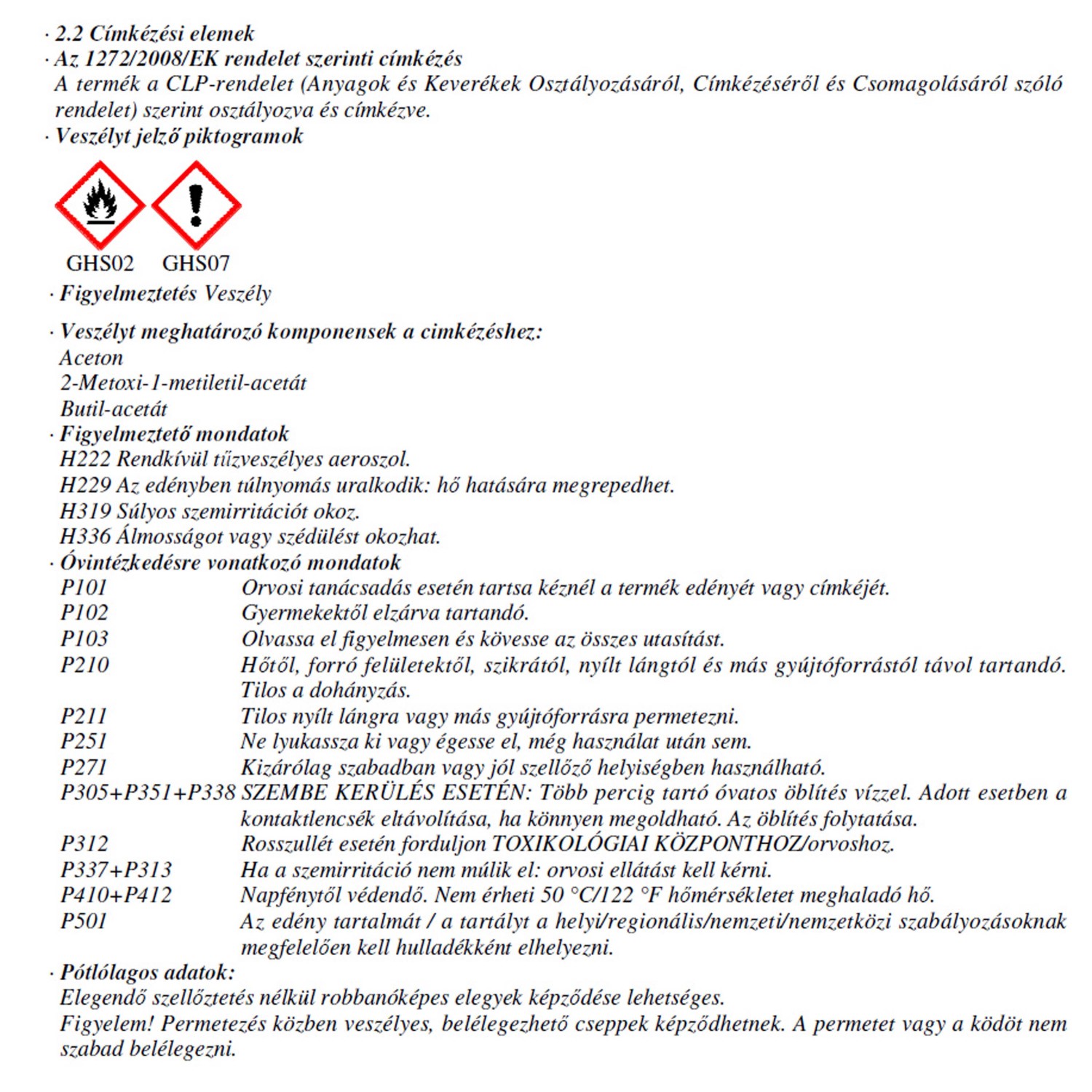 | Alk. gyermekjátékhoz (DIN EN 71-3 bevizsg.): | Gyermekjátékhoz nem alkalmas |