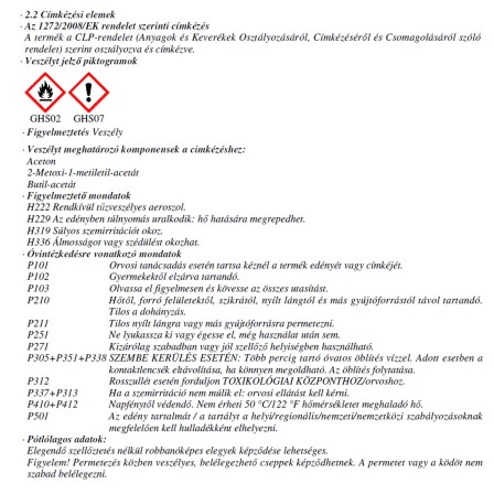 | Fogyasztás m²-enként, ml-ben: | 3,75 ml |