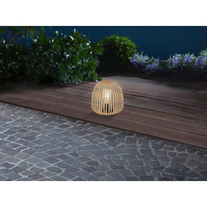 A Mereta napelemes LED-es dekorlámpa lenyűgöző hangulatot teremt a kertben. Modern rácsos formatervével és elegáns matt bézs színével magára vonzza a tekintetet, és harmonikusan illeszkedik a kert vagy a terasz stílusához. A dekoratív hangulatvilágítást biztosító lámpa átmérője 20 cm, magassága 18,5 cm. Különlegessége az izzószálas fényforrás, amely egy fixen beépített melegfehér LED-del hangulatos fénymintát hoz létre, míg a rácsos minta hangulatos árnyékot vet.