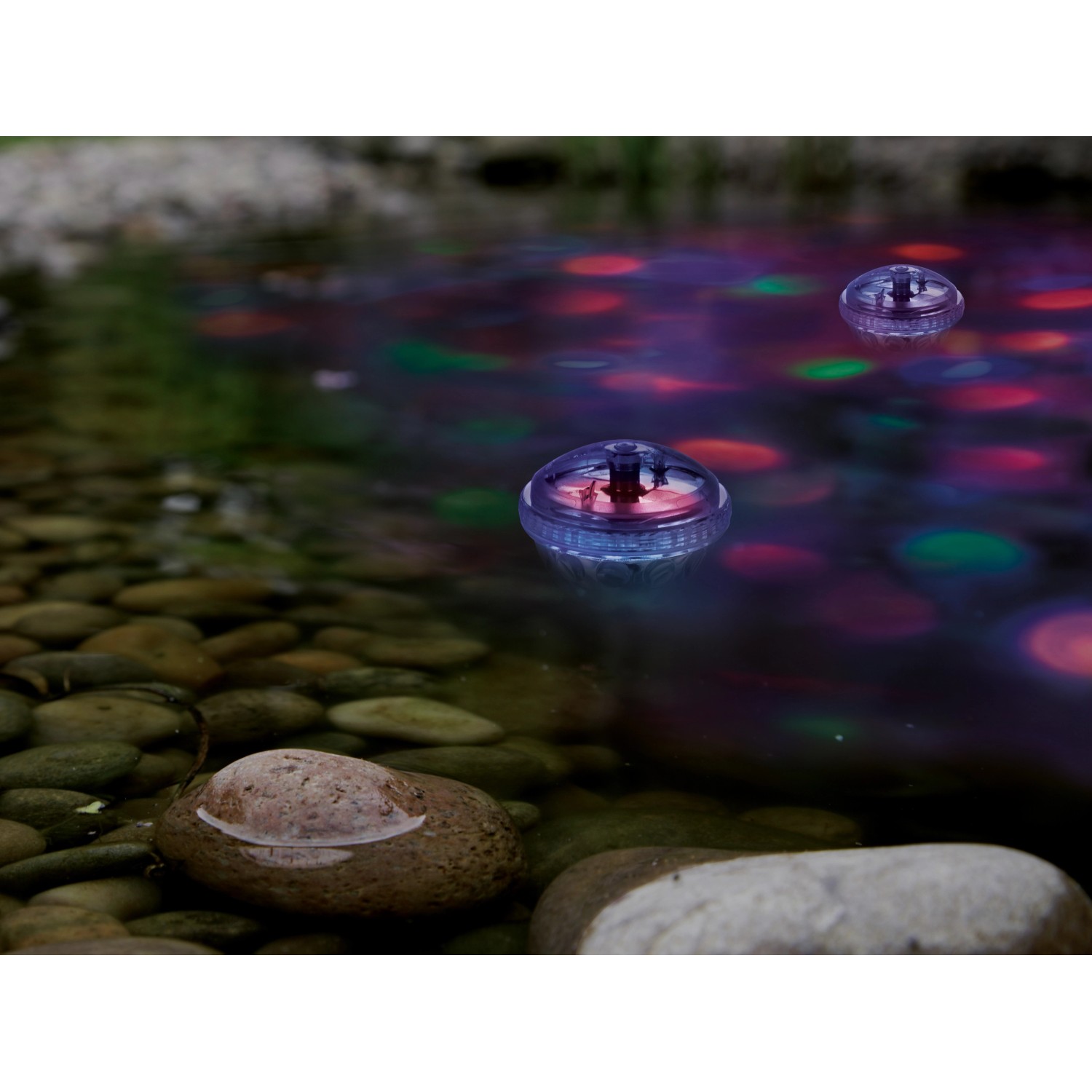 A napelemes LED-es tólámpa kiválóan alkalmas a kert dekoratív megvilágítására, ugyanis a kerti tó vagy a medence vízfelületén úszik. A csomagban található földbe szúrható rúddal a lámpa a virágágyás vagy a kert egyéb helyeinek megvilágítására a földbe is szúrható. Fekete műanyagból készült, négy LED-del rendelkezik, melyek mindegyike 0,24 wattos, és villogó hatással rendelkezik, ami partihangulatot teremt. A csomag tartalmaz egy akkumulátort, amely 8 órán keresztül látja el a LED-eket.