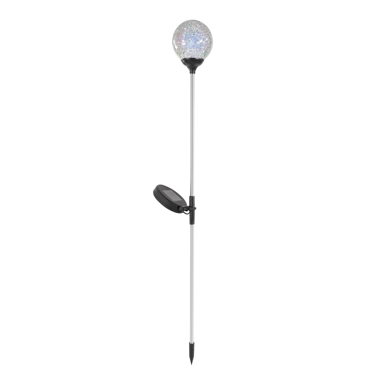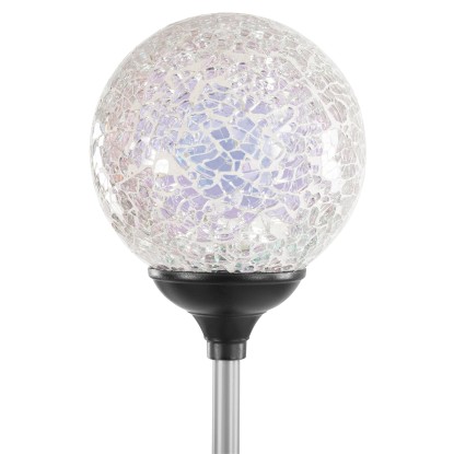 A mozaikgömbbel díszített OBI Lighting Cori földbe szúrható napelemes LED-es lámpa a sötétség beálltát követően fejti ki csodaszép fényerejét, miáltal a kertnek tetszetős megvilágítást biztosít. Ennek érdekében a fényforrás LED-es kialakítású, kábelek nélkül. A rozsdamentes acélból készült napelem beépített, fehér 0,06 W-os LED-del és kapcsolóval van felszerelve. Továbbá az IP védelmi osztály IP44 szerint fröccsenésálló, és a talajtüske segítségével a kívánt helyen könnyen beilleszthető a talajba.