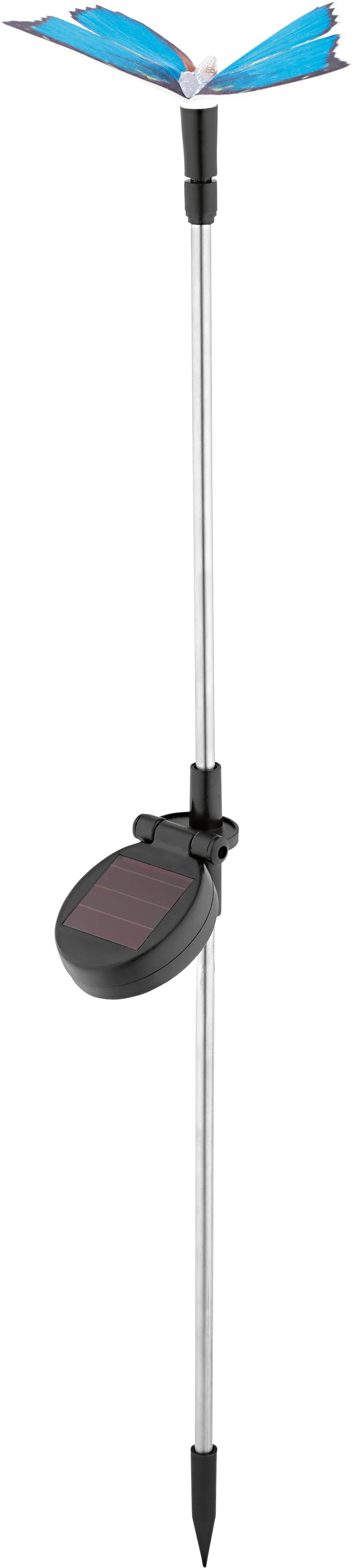 Az OBI Lighting Sagli LED-es földbe szúrható napelemes lámpa dekoratív és látványos fényfoltja a kertnek, terasznak vagy erkélynek. A beépített fehér LED megvilágítja a kék pillangót, és gondoskodik a jó hangulatról. Nappal a lámpa napelemei összegyűjtik és eltárolják a napenergiát, amelyet aztán a sötétedéstől ismét leadnak, és szép fényhatásokról gondoskodnak - áramellátástól függetlenül, vezeték nélkül.