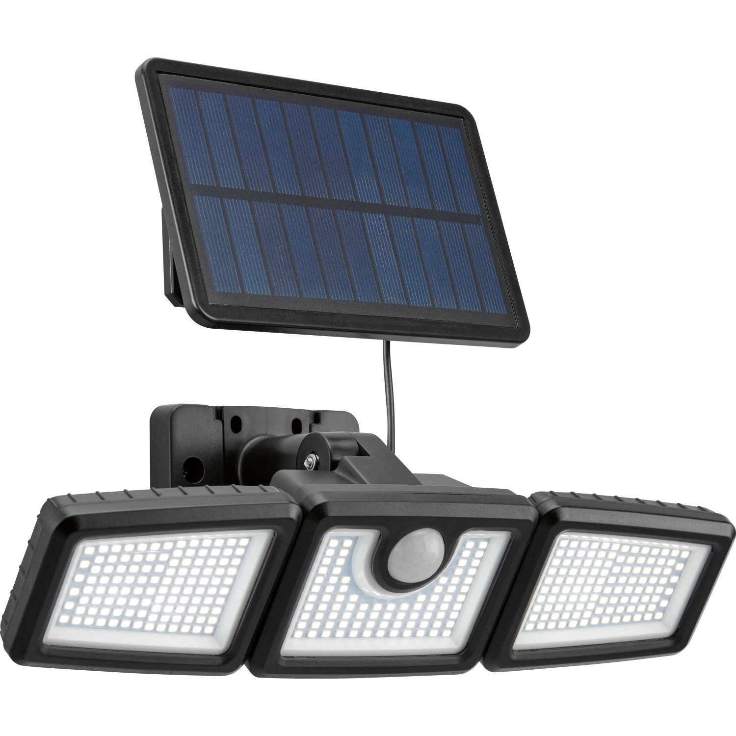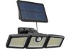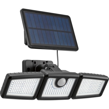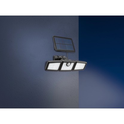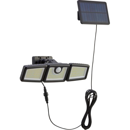 Ez a fekete színű, robusztus műanyagból készült, LED-es kültéri lámpa fényesen megvilágítja a felhajtót vagy a házbejáratot, amikor ön sötétben ér haza. A fixen beépített 312 LED 800 lumen fényerejű lámpa nappali fehér fényt biztosít, amely a sötét sarkok megvilágítására ideális. A rugalmasan elhelyezhető külső napelemnek köszönhetően (kábelhossz 4,8 m) a fényforrás kevésbé napos helyeken is megbízhatóan feltöltődik.