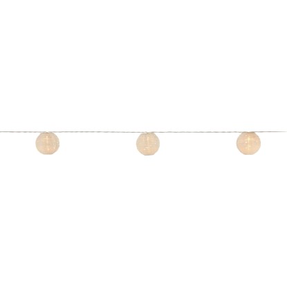 Varázsolja el kertjét, teraszát vagy erkélyét a Fiuggi napelemes fényfüzérrel. A 8,40 méter hosszú füzér 24 fehér lampiongömbbel rendelkezik, amelyek átmérője egyenként 7,5 cm. Minden gömb melegfehér LED-del van felszerelve, amelyek kellemes fényt biztosítanak A beépített akkumulátornak és a talajtüskével (magasság 16,5 cm) ellátott külső napelemnek köszönhetően a fényfüzért rugalmasan elhelyezheti a kültéren és nem függ attól, hogy van-e a közelben áramforrás. A 1,5 méter hosszú kábel további rugalmasságot biztosít a rögzítés során.