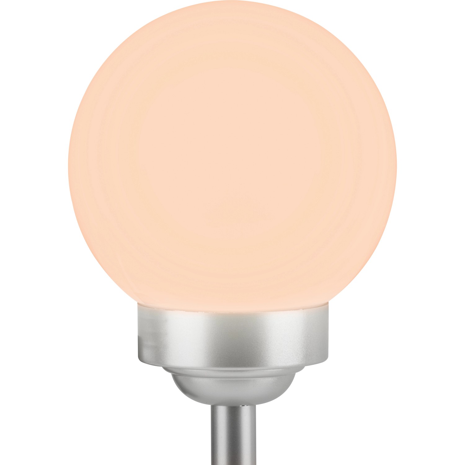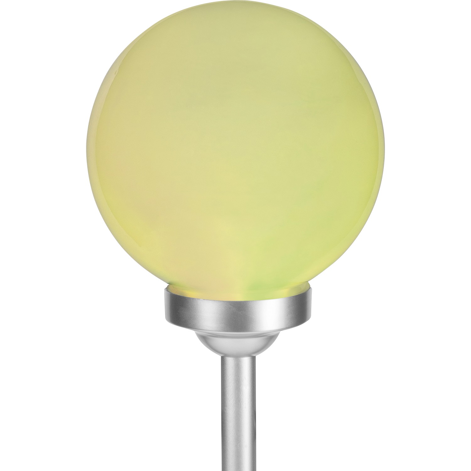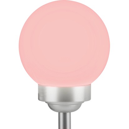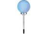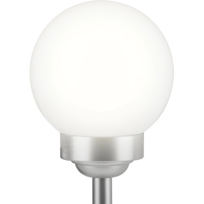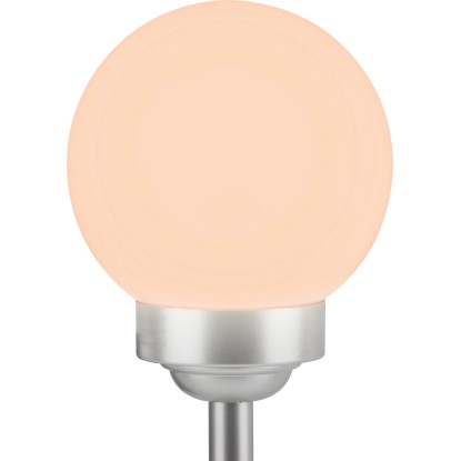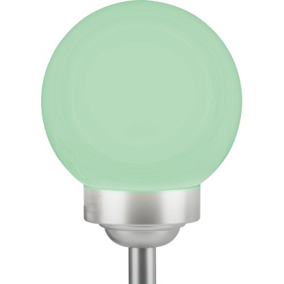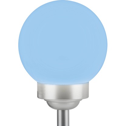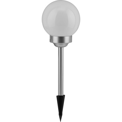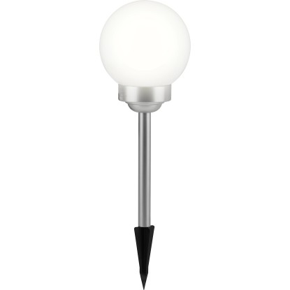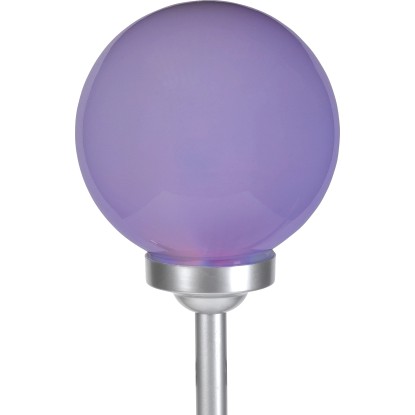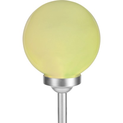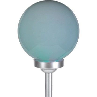 A gömbben két darab fixen rögzített LED-es izzó található. Teljesítményük 0,06 W. Az egyik LED fehér, míg a másik az automatikus színváltáshoz RGB funkcióval rendelkezik. Miután a beépített akkumulátorok feltöltődtek, a lámpa 6-8 órán át világít. Az IP44 védelmi osztálynak megfelelően megbízhatóan védett a fröccsenő vízzel szemben. Rögzítéshez a rudat egyszerűen a földbe kell szúrni.