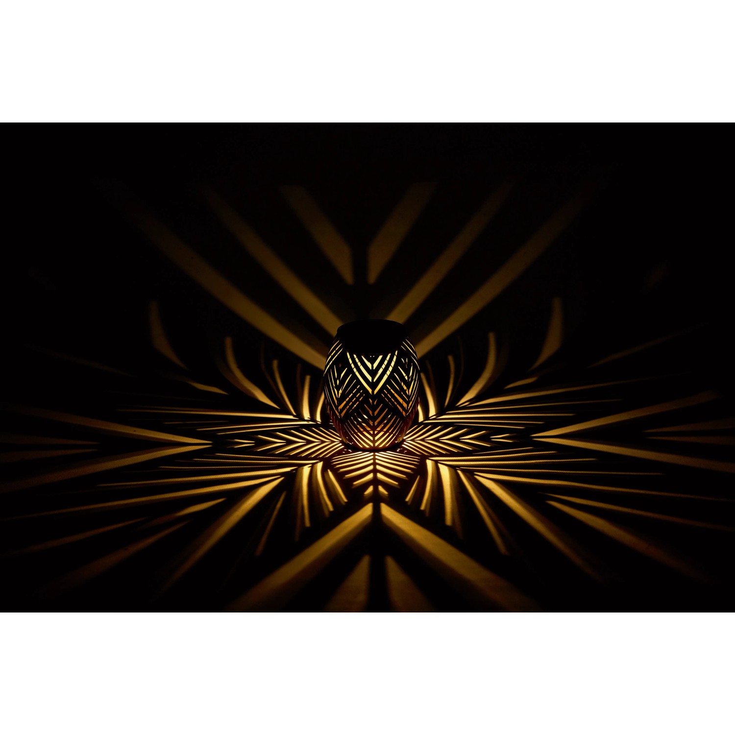 Élvezze a hangulatos estéket a szabadban a napelemes asztali lámpával. A kivágott levélminta varázslatos fényjátékot hoz létre, amely romantikus légkört teremt a kertben, a teraszon vagy az erkélyen. A robusztus vasból készült lámpatest nemcsak vonzó kialakítása, hanem tartóssága miatt is meggyőző. A napelemes modulnak és a melegfehér LED-nek köszönhetően áramcsatlakozás nélkül élvezheti a világítást. A beépített be-/kikapcsoló egyszerű kezelést tesz lehetővé.