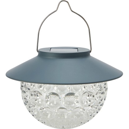 A bájos, lámpás dizájnt kínáló napelemes LED-es függőlámpa különleges hangulatot teremt. A füstkék színű, matt felületű lámpabúra magára vonzza a tekintetet és friss hangulatot teremt. A lámpa kompakt méretű, 13 cm x 8 cm-es, és praktikus akasztóval is rendelkezik, így tetszőleges helyre akaszthatja fel: egy ágra, egy kampóra vagy a pergolára. A strukturált körmintás kerek lámpatest gyönyörű és hangulatos fénnyel világít szürkületkor, és meleg, hívogató hangulatot teremt.