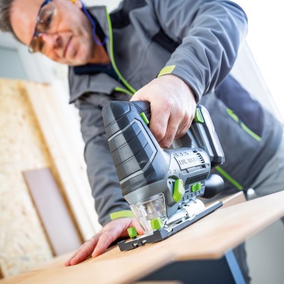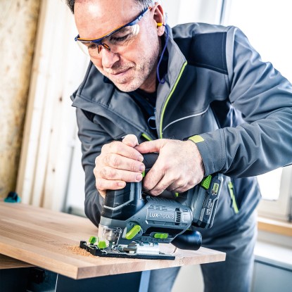 A kellemes Softgrip markolat kényelmes, fáradásmentes munkavégzést tesz lehetővé. A munkaterület optimális megvilágítása érdekében a felszerelés részét képezi egy fényes LED-lámpa. A munkaterület tisztán tartása érdekében a forgácsok elszívásához porelszívó is csatlakoztatható.Akkumulátoros működésű szúrófűrész